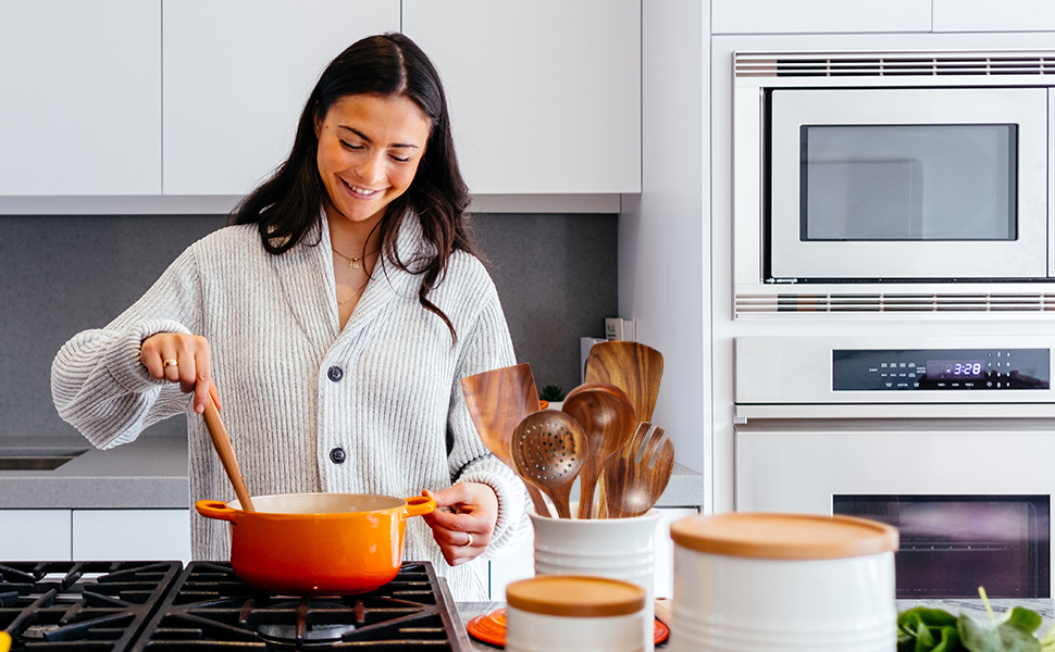 Kitchen utensils should be made from a material that won't scratch cookware, especially if it's nonstick cookware.